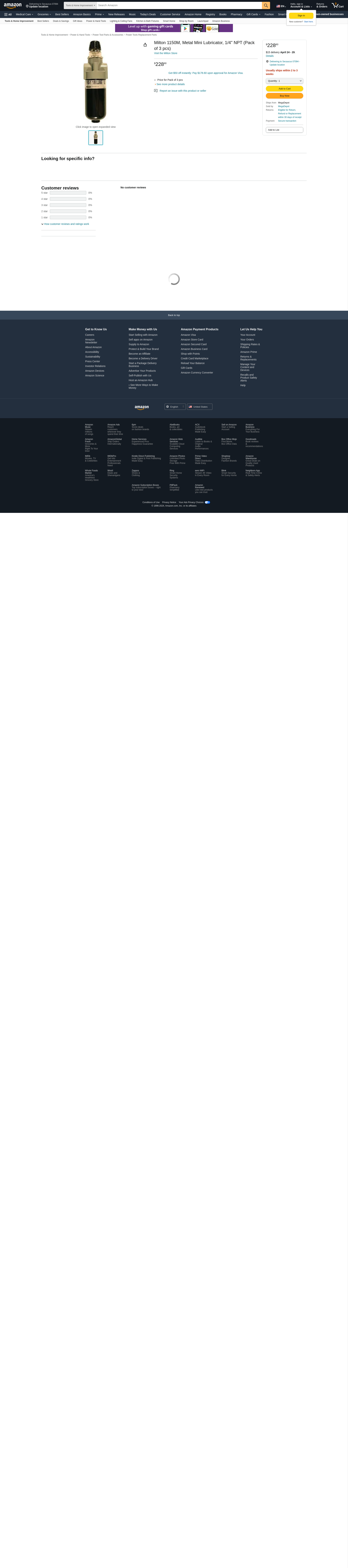 Milton 1150M, Metal Mini Lubricator, 1/4" NPT (Pack of 3 pcs)