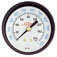 Use this pressure gauge for reliable service with compressors, regulators, air lines, pneumatic tools and equipment. Made up of brass mechanism, ABS case and a polycarbonate lens, this gauge is resistant to heat, corrosion, water, salt water and oil. Can also be used in steam applications if less than 120 degrees Fahrenheit. The 1/4" NPT pressure gauge has a center back mount and offers a pressure range of 0 to 60 PSI. 2" face diameter. 1/4" national pipe thread Pressure range of 0 to 60 pounds per square inch Temperature range of 40 degrees Fahrenheit to 140 degrees Fahrenheit