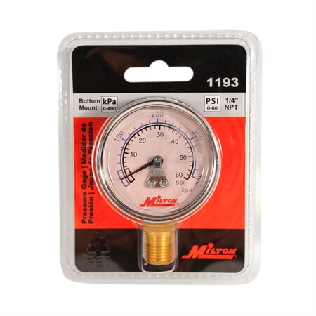 MILTON 1193 - Gage 1/4 NPT, 0-60 PSI - Bottom Mount"