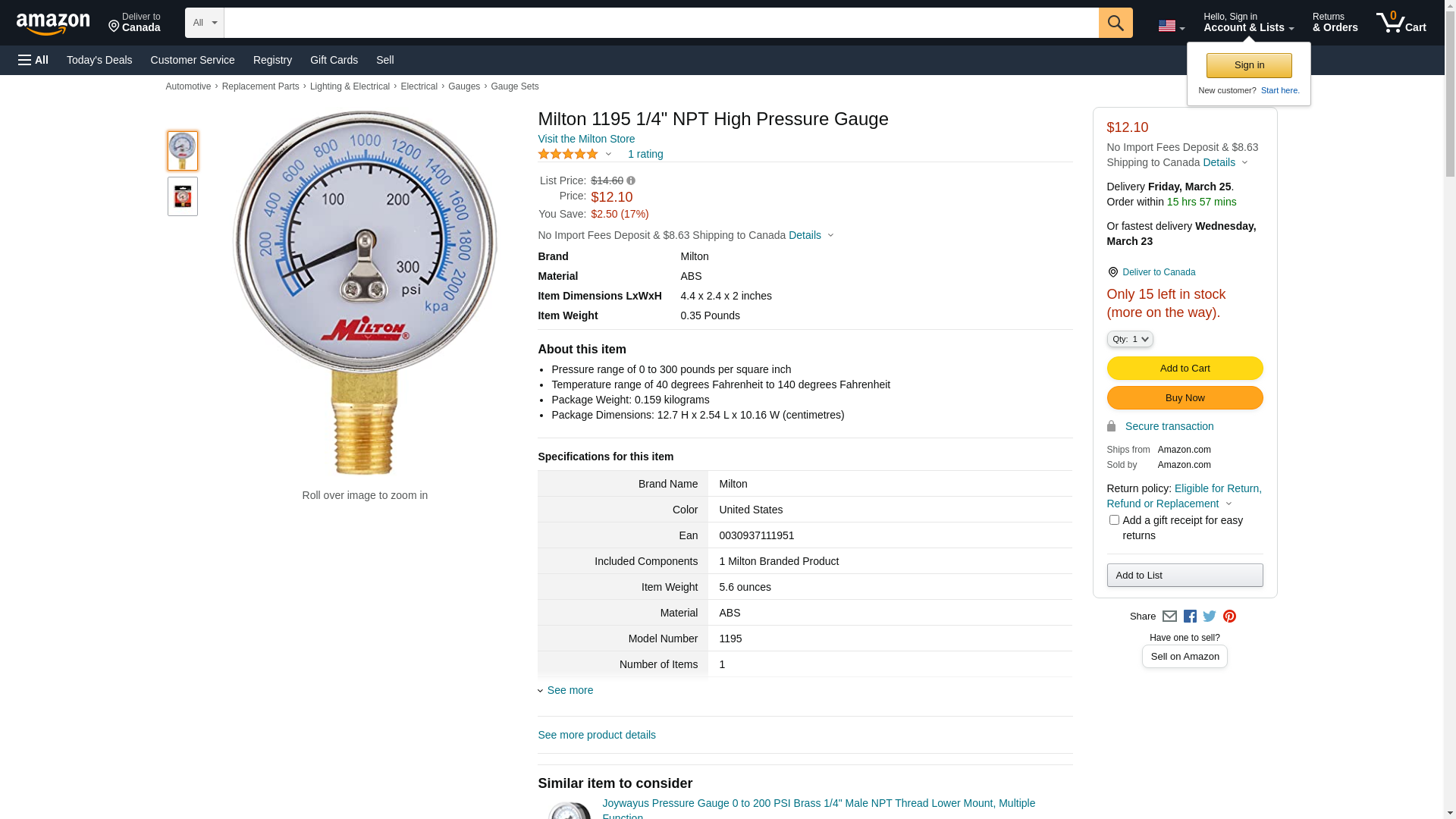 Use this pressure gauge for reliable service with compressors, regulators, air lines, pneumatic tools and equipment. Made up of brass mechanism, ABS case and a polycarbonate lens, this gauge is resistant to heat, corrosion, water, salt water and oil. Can also be used in steam applications if less than 120 degrees Fahrenheit. The 1/4" NPT pressure gauge has a bottom mount and offers a pressure range of 0 to 300 PSI. 2" face diameter. 1/4" national pipe thread Pressure range of 0 to 300 pounds per square inch Temperature range of 40 degrees Fahrenheit to 140 degrees Fahrenheit