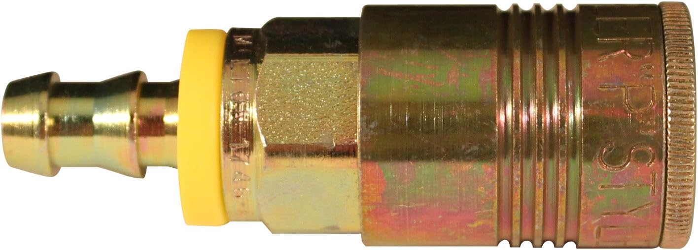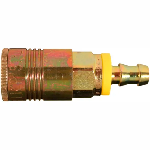 1746-6 These 3/8" push on and lock on hose barb couplers have 8 locking balls for better retention of plugs. Specifically designed to fit Milton push on and lock on hoses, the P style hose barb coupler requires no clamp or ferrule; simply push fitting into hose. Has a maximum inlet pressure of 300 PSI and a basic flow size of 3/8". 3/8" connection Maximum inlet pressure of 300 pounds per square inch Maximum air flow of 68 standard cubic feet per minute Maximum temperature of 250 degrees Fahrenheit Buna-N seal