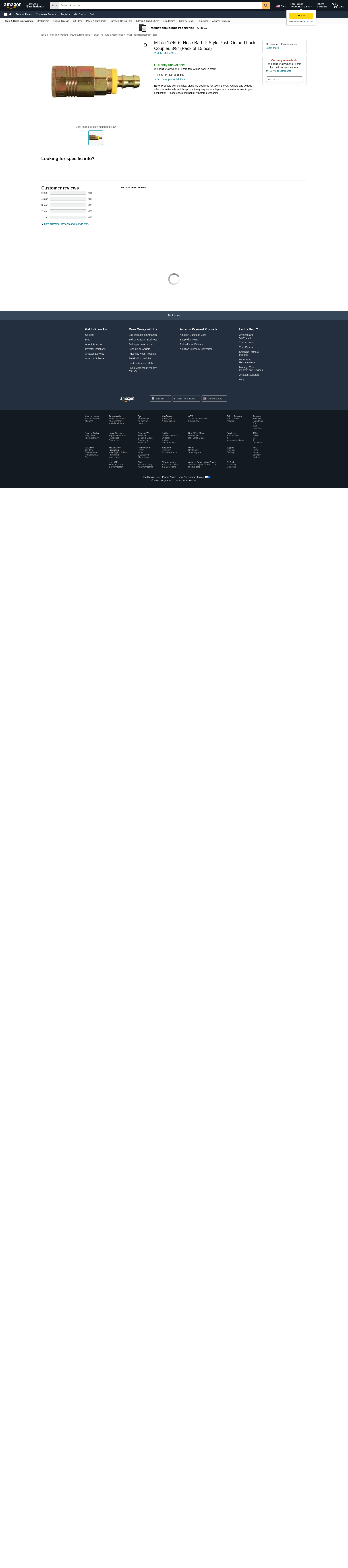 Milton 1746-6 P Style Automotive Push On and Lock Coupler 3/8" Hose Barb 50 Pack