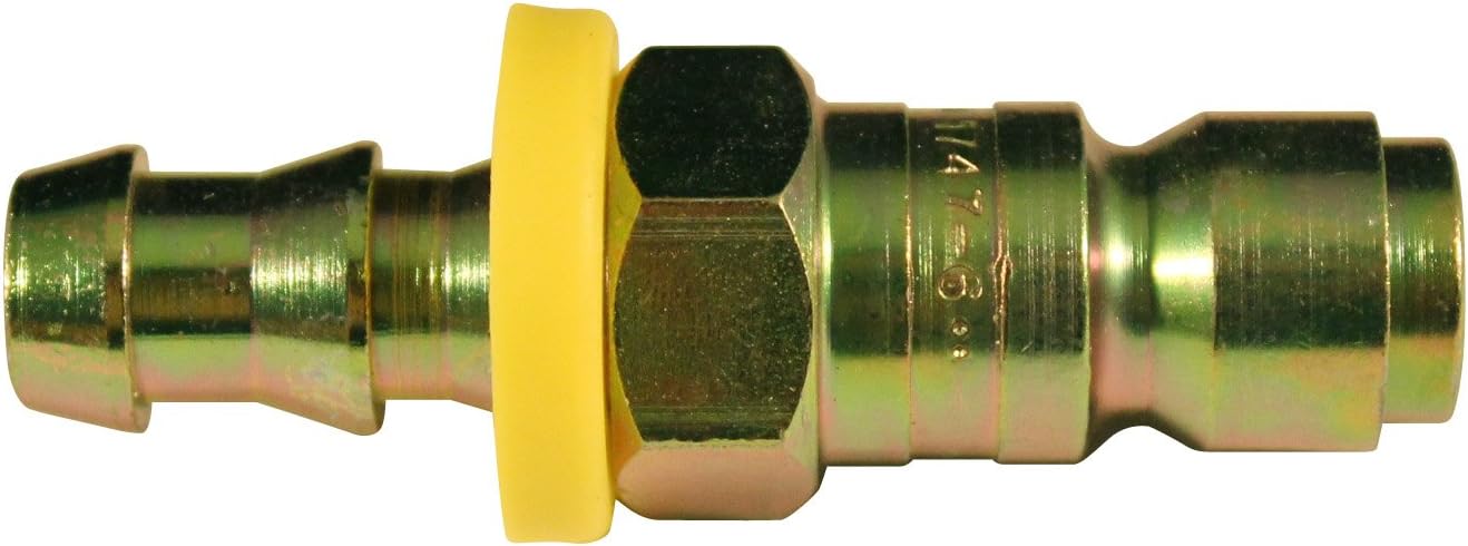 1747-6 These 3/8" push on and lock on hose barb plugs are specifically designed to fit Milton push on and lock on hoses. The P style hose barb plug requires no clamp or ferrule; simply push fitting into hose. Has a maximum inlet pressure of 300 PSI and a basic flow size of 3/8". 3/8" connection Maximum inlet pressure of 300 pounds per square inch Maximum air flow of 68 standard cubic feet per minute Maximum temperature of 250 degrees Fahrenheit Buna-N seal