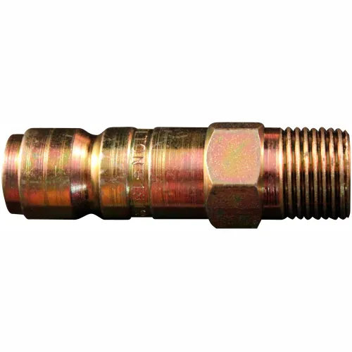 1819 3/8 " MNPT G style plugs are made of case hardened steel and are plated to resist rust. G style couplers and plugs have a 1/2" basic flow size and a maximum of 300 PSI. Offering air flow of up to 99 SCFM, Milton G style couplers and plugs are perfect for applications that require over 60 SCFM. 3/8" male national pipe thread Maximum inlet pressure of 300 pounds per square inch Air flow of 99 standard cubic feet per minute Maximum temperature of 250 degrees Fahrenheit