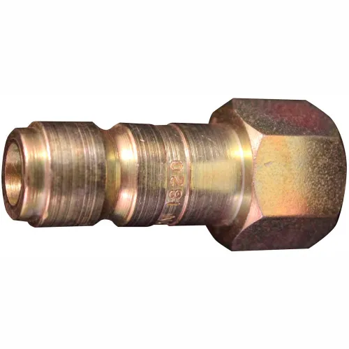 1820 3/8" FNPT G style plugs are made of case hardened steel and are plated to resist rust. G style plugs have a 1/2" basic flow size and a maximum of 300 PSI. Offering air flow of up to 99 SCFM, Milton G style plugs are perfect for applications that require over 60 SCFM. 3/8" female national pipe thread Maximum inlet pressure of 300 pounds per square inch Air flow of 99 standard cubic feet per minute Maximum temperature of 250 degrees Fahrenheit