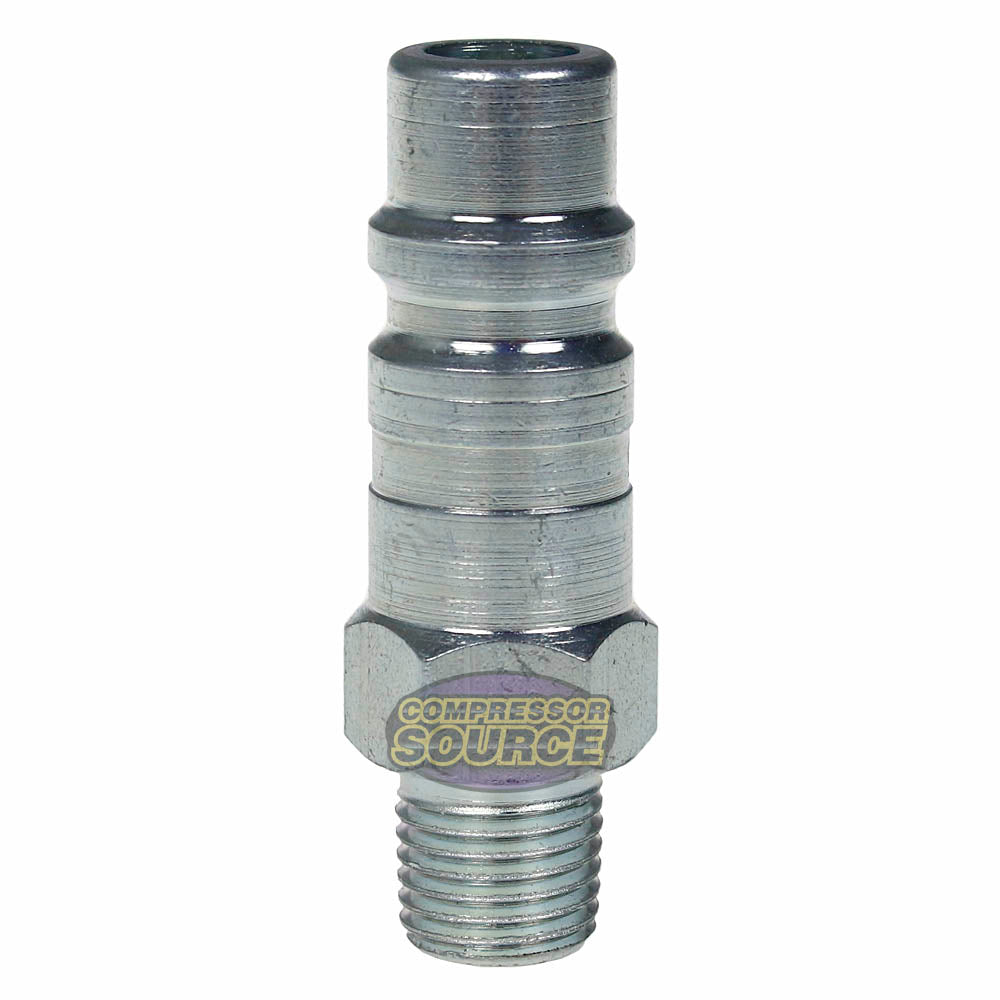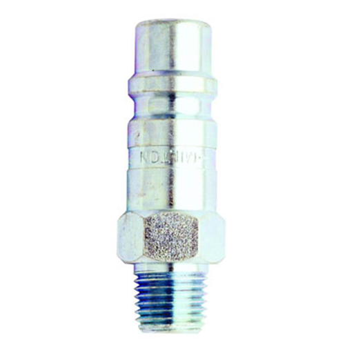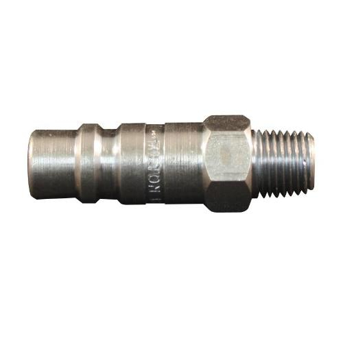 1855 1/4" MNPT G style plugs are made of case hardened steel and are plated to resist rust. G style plugs offer a basic flow size of 1/2" and a maximum pressure of 300 PSI. With air flow of up to 99 SCFM, G style plugs are perfect for applications that require more than 60 SCFM. 1/4" male national pipe thread Maximum pressure of 300 pounds per square inch Air flow of 99 standard cubic feet per minute Maximum temperature of 250 degrees Fahrenheit