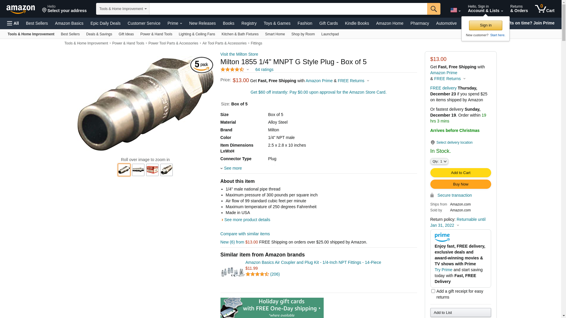 ![]() StockWise Auto | MIL-1855 | 1 | 1 | 1 @ $3.30 | |