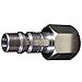 1860 3/8" FNPT G style plugs are made of case hardened steel and are plated to resist rust. G style plugs offer a basic flow size of 1/2" and a maximum pressure of 300 PSI. With air flow of up to 99 SCFM, G style plugs are perfect for applications that require more than 60 SCFM. Complete with Buna-N seal. 3/8" female national pipe thread Maximum pressure of 300 pounds per square inch Air flow of 99 standard cubic feet per minute Maximum temperature of 250 degrees Fahrenheit