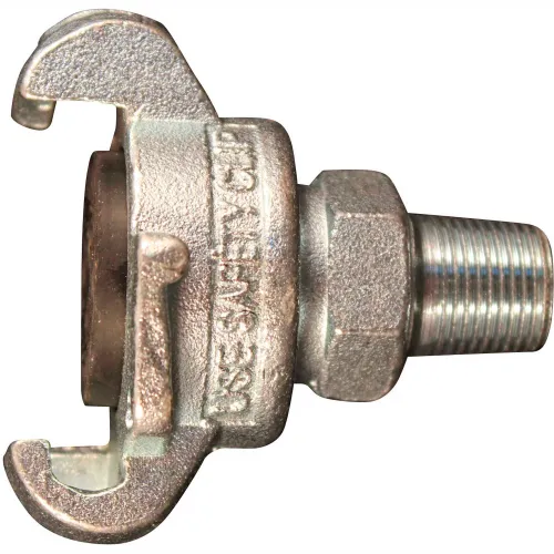 This 1/4" MNPT twist lock universal coupler is made of malleable iron and comes complete with safety clip and lanyard. These couplers with two claws are great for construction, highway maintenance, mining mobile compressors, agriculture and tool rental shop applications. Also known as crowfoot, claw type or Chicago style couplers, these twist lock universal couplers have a maximum working pressure of 150 PSI. 1/4" male national pipe thread Maximum pressure of 150 pounds per square inch Maximum temperature of 160 degrees Fahrenheit Can be used with other twist lock universal couplers sized 1/4" to 1"