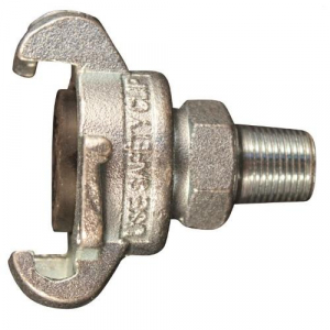 This 3/8" MNPT twist lock universal coupler is made of malleable iron and comes complete with safety clip and lanyard. These couplers with two claws are great for construction, highway maintenance, mining mobile compressors, agriculture and tool rental shop applications. Also known as crowfoot, claw type or Chicago style couplers, these twist lock universal couplers have a maximum working pressure of 150 PSI. 3/8" male national pipe thread Maximum pressure of 150 pounds per square inch Maximum temperature of 160 degrees Fahrenheit Can be used with other twist lock universal couplers sized 1/4" to 1"