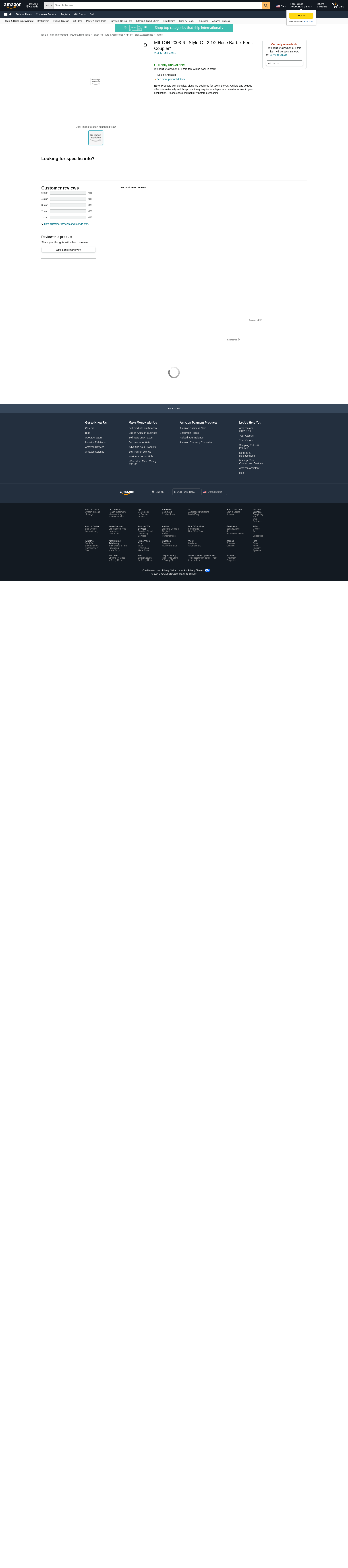 MILTON 2003-6 - Style-C - 2 1/2 Hose Barb x Fem. Coupler"