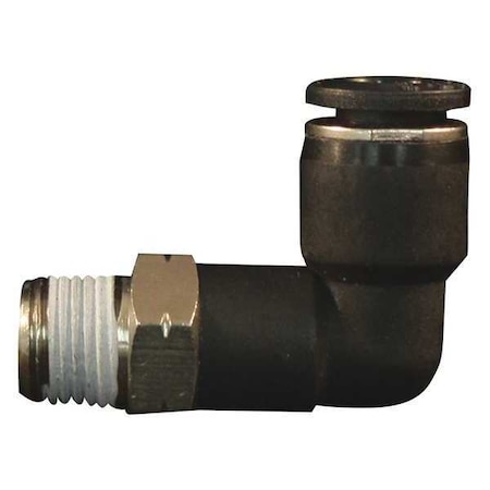 1/4" MNPT 3/8" OD Push to Connect Swivel Elbow. Features: 1/4" male national pipe thread 3/8" outside diameter Maximum working pressure of 150 pounds per square inch Buna-N seal 1/4" MNPT nylon push to connect elbow fittings offer easy installation of air lines. Simply push tubing into fitting, no gluing or special tools required. This 3/8" OD connector is reusable by simply pushing sleeve in and releasing the tubing. Push to connect fittings allow for Maximum air flow and faster connection than standard compression fittings. Great for the garage or shop, these swivel elbow fittings pivot 360 degrees Fahrenheit or easy installation and use.