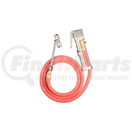 Dual head lock on chuck inflator gage has a pressure range of 10-160 PSI or 80-840 kPa. Inflator gage includes a 5' hose assembly and a 6" extended push on lock coupling. This truck tire inflator gage meets standard 1910.77 and includes a push button deflator. Features Dual lock on chuck Pressure range of 10 to 160 pounds per square inch or 80 to 840 kilopascal Includes a 6" extended push on lock coupling Includes a 5' hose