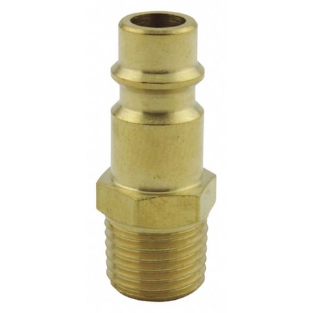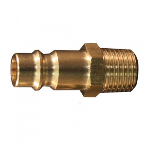 1/4" MNPT V Style High Flow Plug. Features: Basic flow size of 74 standard cubic feet per minute Maximum 300 pounds per square inch Push type sleeve release Maximum recommended temperature of 250 degrees Fahrenheit Recommended for use with any type of percussion tool V style 1/4" MNPT high flow brass plugs are used in applications that require high volume, low pressure. Maximum working pressure of 300 PSI. Have a 1/4" basic flow size and air flow of up to 74 SCFM.