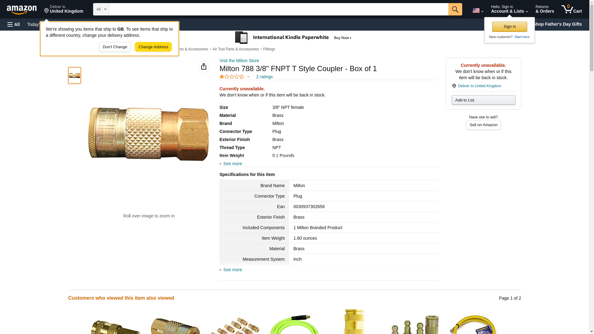 Milton 788 3/8" FNPT T Style Coupler - Box of 1