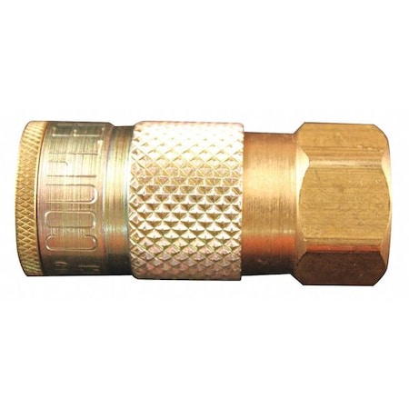 3/8" FNPT T Style Coupler. Features: 3/8" female national pipe thread Maximum of 300 pounds per square inch Air flow of 40 standard cubic feet per minute Maximum temperature of 250 degrees Fahrenheit Buna-N seal 3/8" FNPT T style couplers offer a maximum inlet pressure of 300 PSI and are ideal for industrial application. These brass couplers have air flow of up to 40 SCFM and are complete with a Buna-N seal.