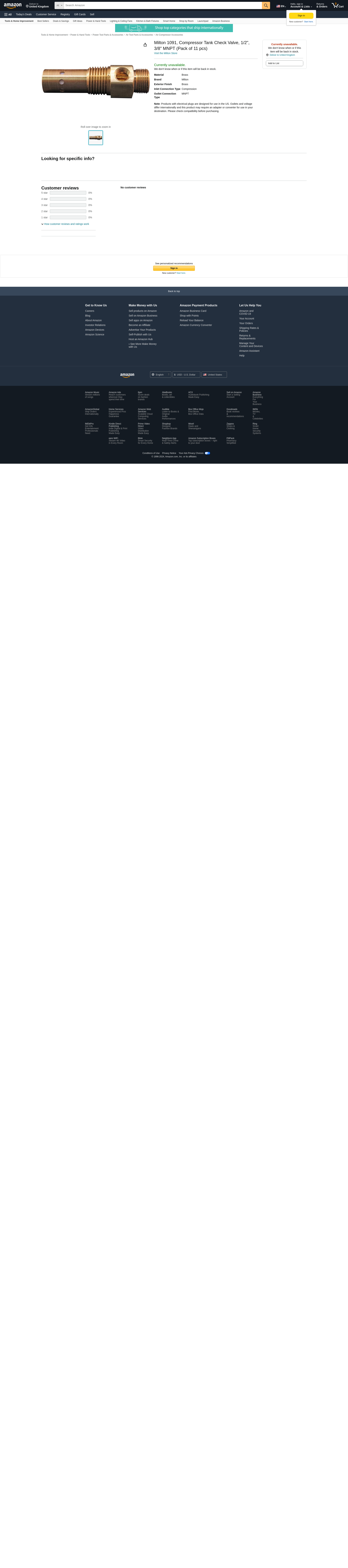Milton 1091, Compressor Tank Check Valve, 1/2", 3/8" MNPT (Pack of 11 pcs)