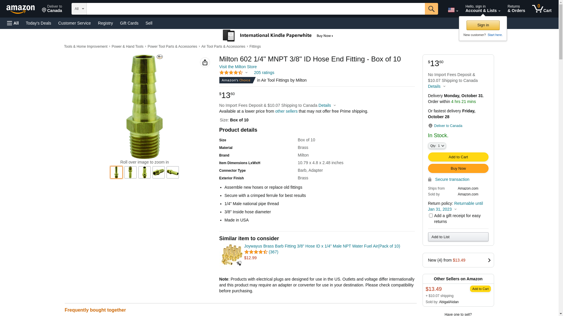 Milton 602 1/4" MNPT 3/8" ID Hose End Fitting - Box of 10
