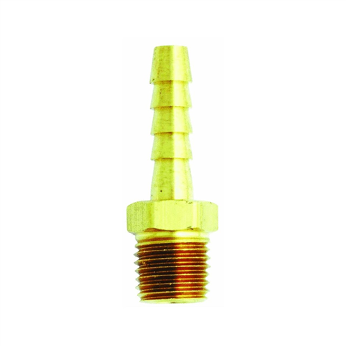 1/4" MNPT 3/8" ID Hose End Fitting. Features: Assemble new hoses or replace old fittings Secure with a crimped ferrule for best results 1/4" Male national pipe thread 3/8" Inside hose diameter 1/4" Male hose end with 3/8" ID hose. Brass hose fittings are used to assemble new hoses or replace old fittings on hoses. A hose clamp may also be used but is not as desirable. For best results and professional finished product the hose end should be secured with a crimped ferrule. Male hose end with barb.