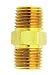 'Male brass hex nipples have a 1/4" MNPT on one side, 3/8" MNPT on the other. These brass hose fittings are used to assemble new hoses or replace old fittings on hoses.'