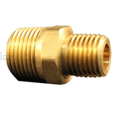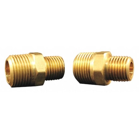 - <b>Price For:</b> Each <b>Overall Length</b>: 1-1/4" <b>Basic Pipe Fitting Material</b>: Metal <b>Outside Dia.</b>: Not Applicable <b>Dia./Thread Size</b>: 1/4" x 3/8" <b>Pipe Size (Fittings)</b>: 3/8" x 1/4" <b>Tube Size</b>: Not Applicable <b>Pipe Fitting Connection Type</b>: MNPT <b>Basic Material</b>: Brass <b>Item</b>: Nipple Hose Fitting <b>For Use With</b>: To Assemble New Hoses or Replace Old Fittings on Hoses <b>System of Measurement</b>: Inch