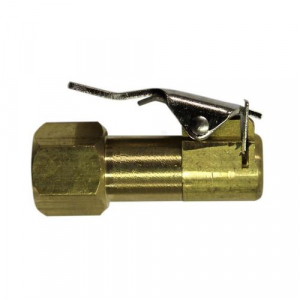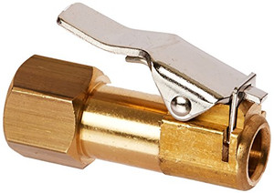 1/4" FNPT Euro Style Air Chuck. Features: Designed and manufactured to exacting standards Closed/sealing type chucks Not for use with an inflator gauge Maximum pressure of 150 pounds per square inch Air chuck clip with 1/4" FNPT, European Style. Unique design allows chuck to easily clip on to valve thread for hands free tire inflation. Easy on style air chuck - press down on handle, push onto tire valve thread and release handle to grip thread. Maximum pressure of up to 150 PSI. Chuck clips on to tire valve.