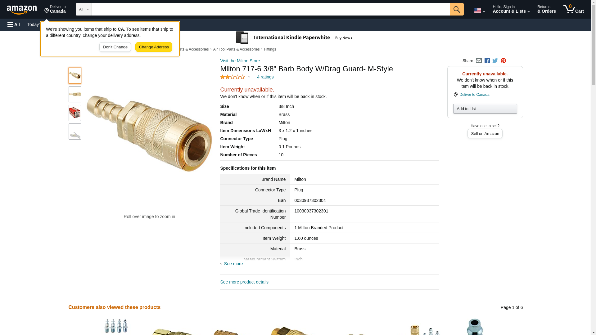Milton 717-6 M Style Industrial Coupler 3/8" Hose Barb 10 Pack