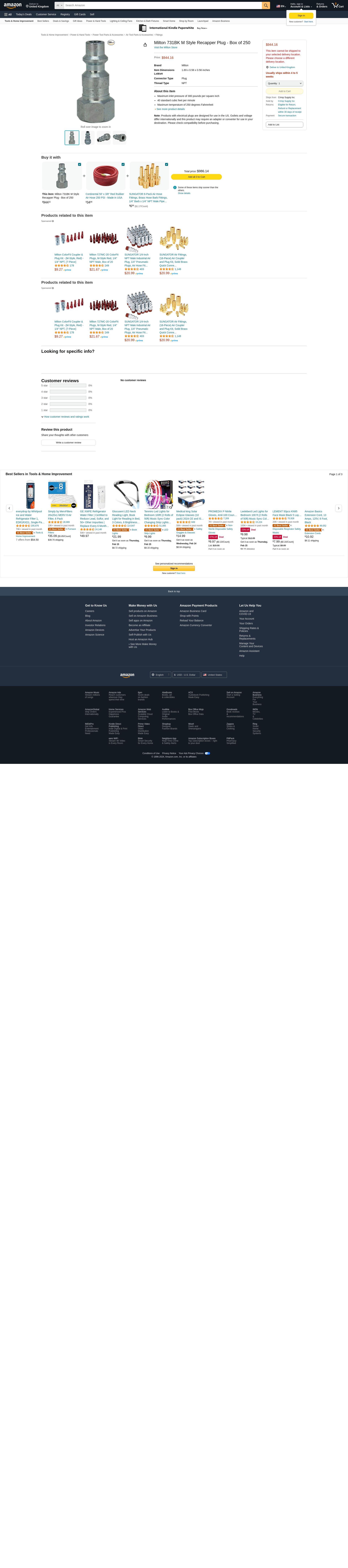 Milton 731BK M Style Recapper Plug - Box of 250