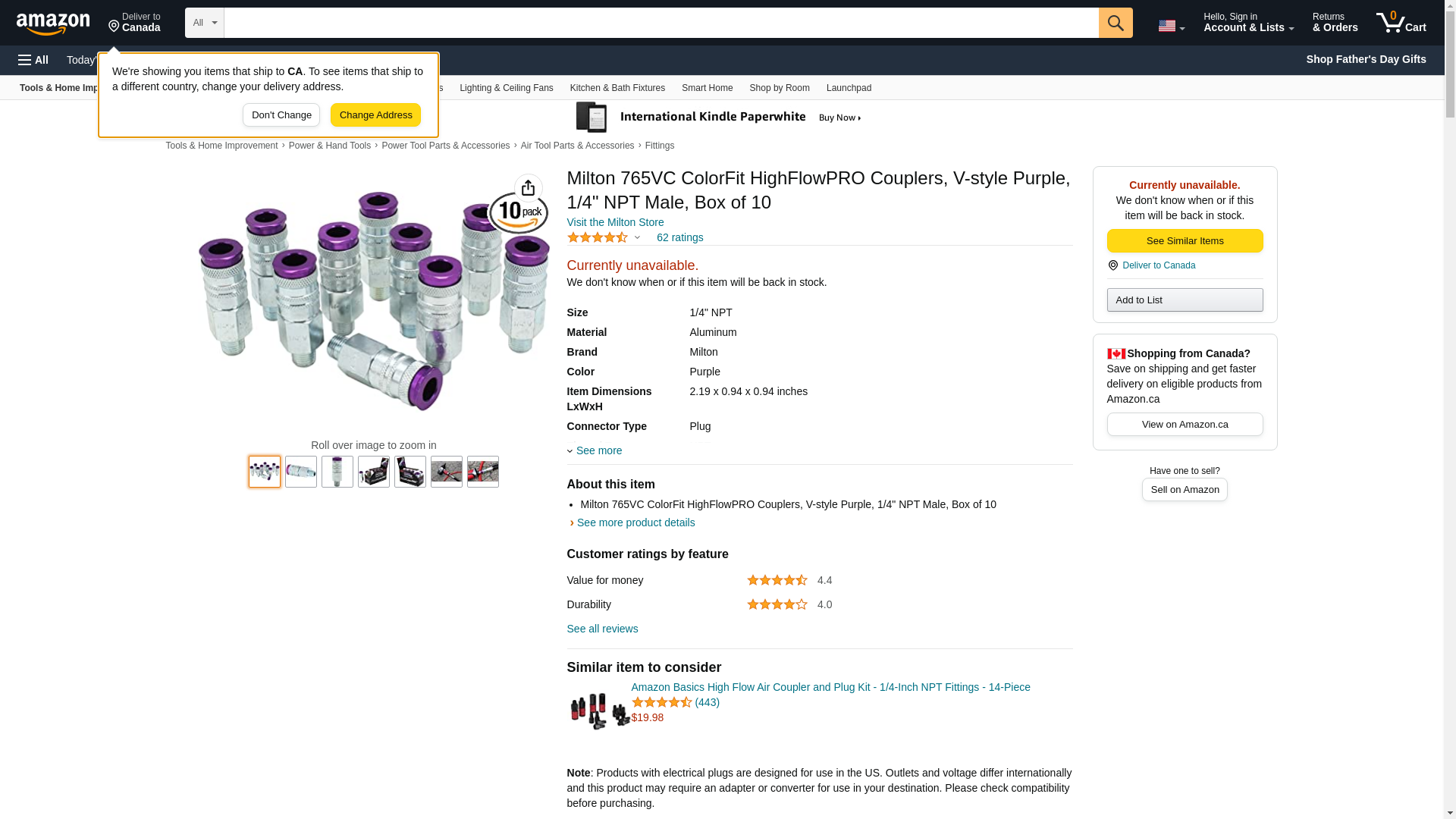 - Milton 765VC ColorFit HighFlowPRO Couplers, V-style Purple, 1/4" NPT Male, Box of 10