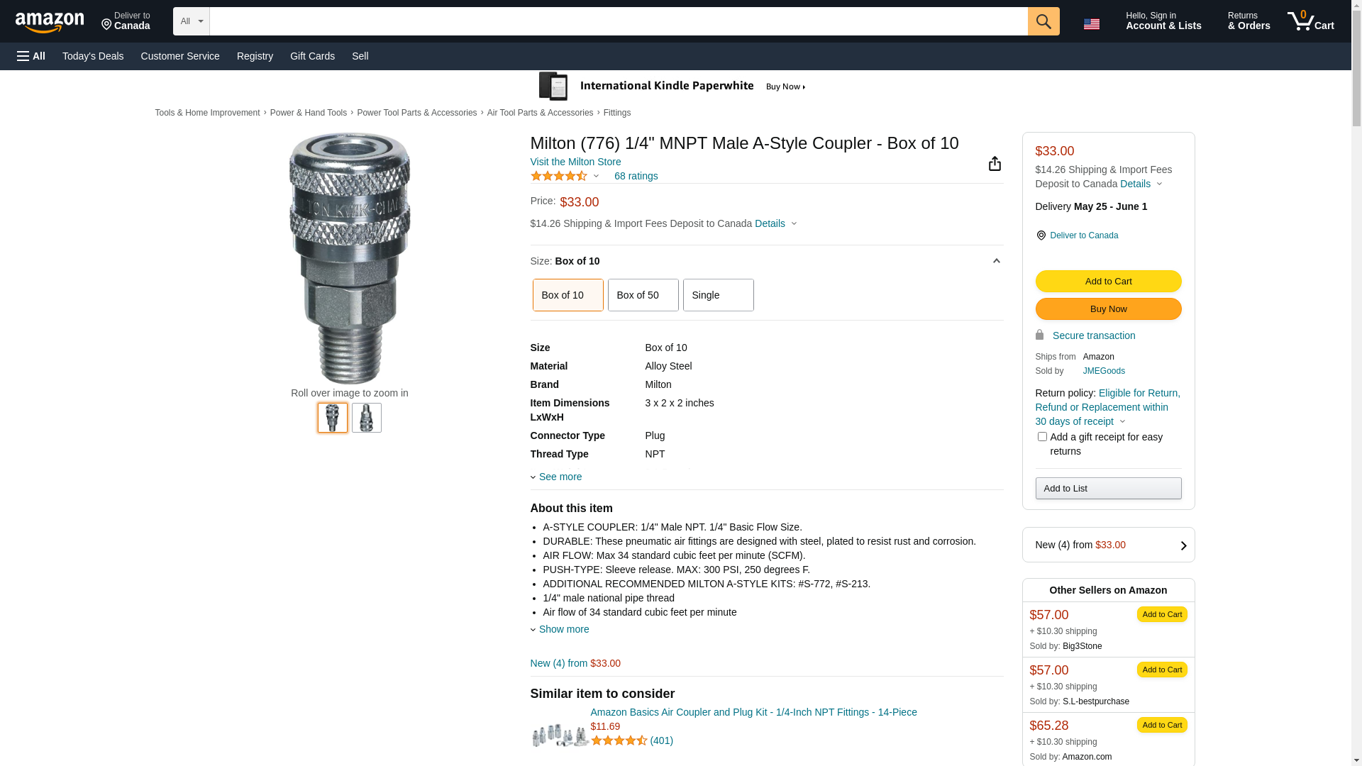 Milton (776) 1/4" MNPT Male A-Style Coupler - Box of 10