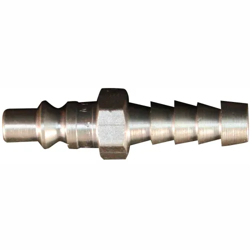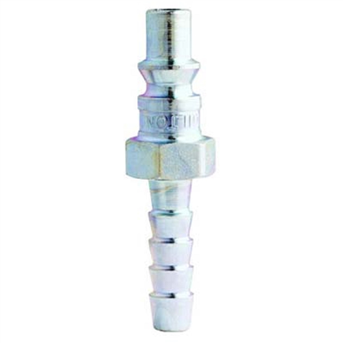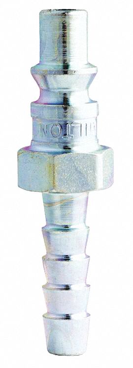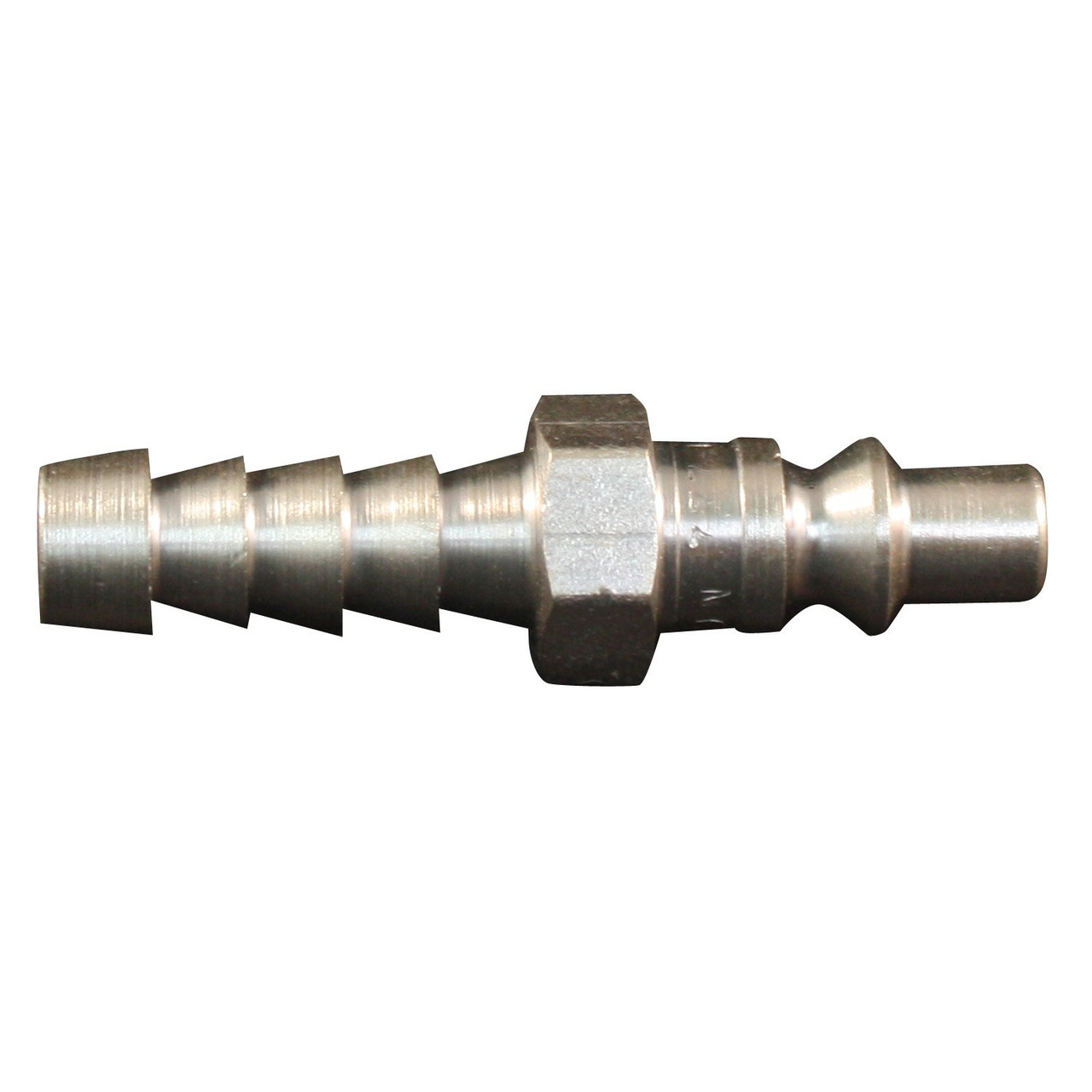 1/4" Hose Barb A Style Plug. Features: Maximum inlet pressure of 300 pounds per square inch Air flow of 34 standard cubic feet per minute Maximum temperature of 250 degrees Fahrenheit A style hose barb plug makes the ideal plug for hose repair or assembling custom hose lengths. Made of steel, this plug includes a 1/4" hose barb. A style couplers offer a 1/4" basic flow size and a Maximum inlet pressure of 300 PSI. Air flow of up to 34 SCFM.