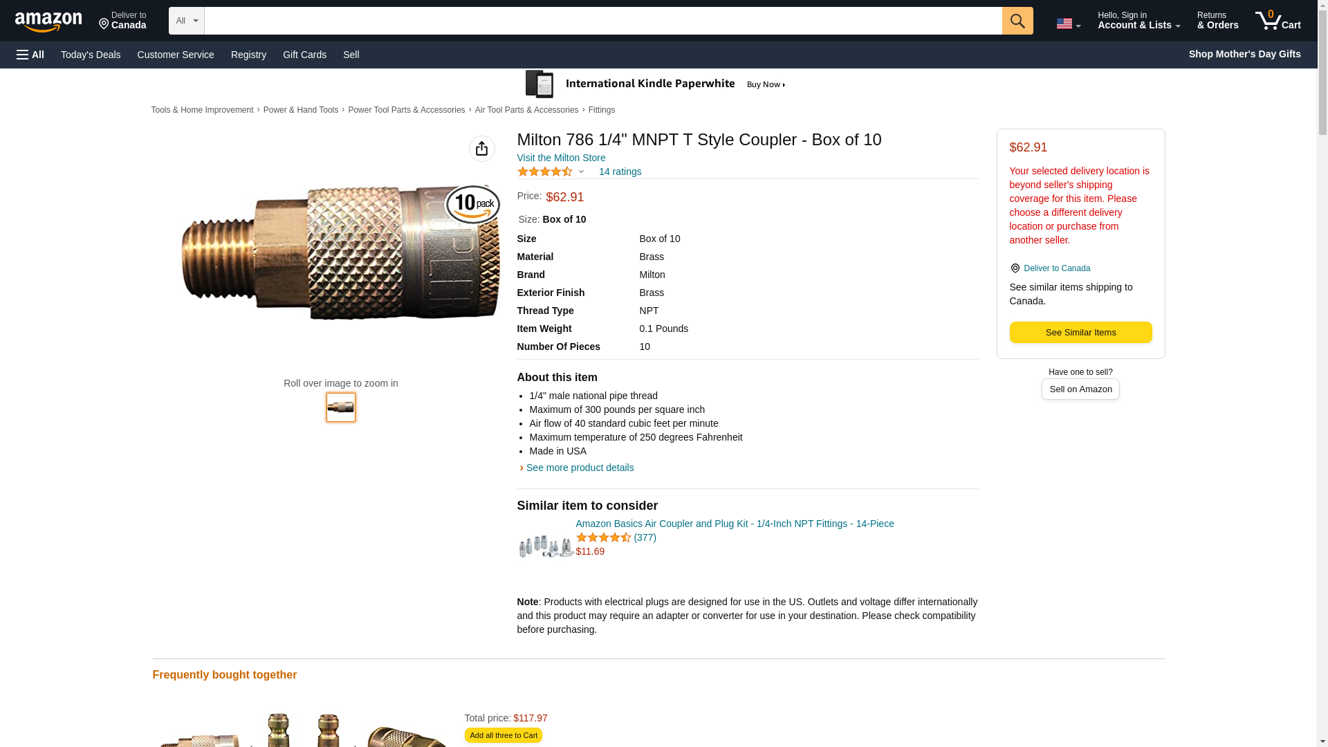 Milton 786 1/4" MNPT T Style Coupler - Box of 10