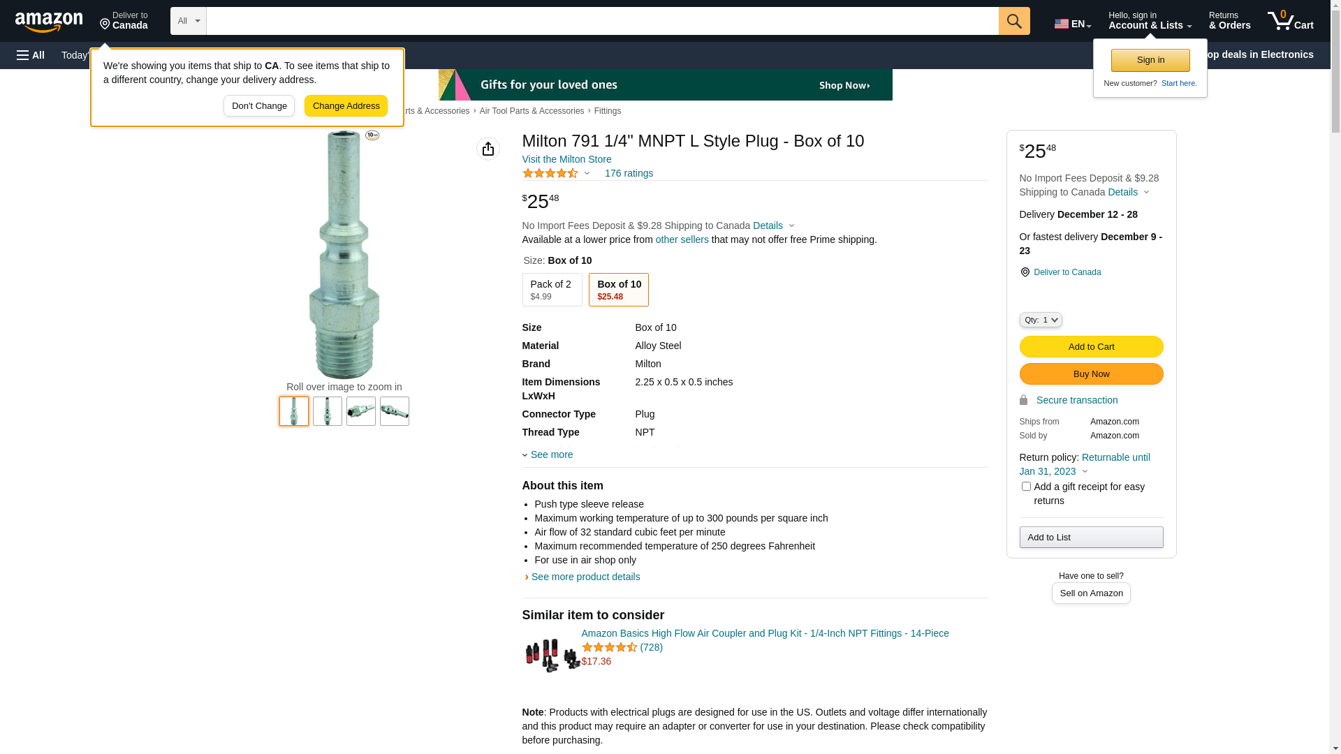 - Item: L Style Plug,1/4" MNPT,PK10; Country of Origin (subject to change): United States