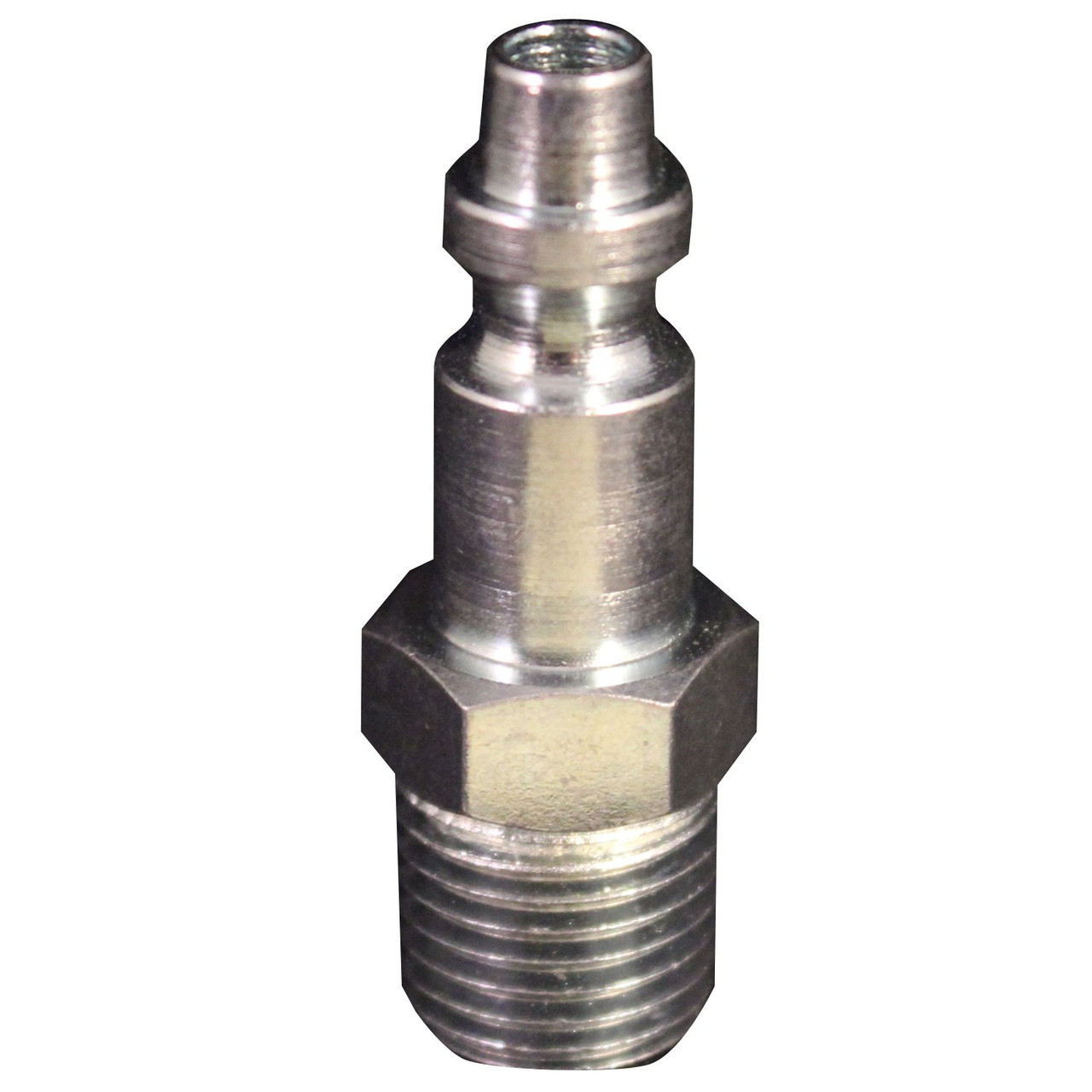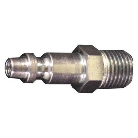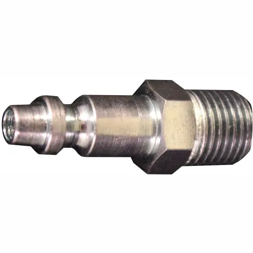 1/4" MNPT D Style Plug. Features: 1/4" male national pipe thread Maximum inlet pressure of 300 pounds per square inch Air flow of 34 standard cubic feet per minute Maximum temperature of 250 degrees Fahrenheit 1/4" MNPT D style plug has a 1/4" basic flow size and is steel plated to resist rust. Has a maximum inlet pressure of 300 PSI and air flow of 34 SCFM. D style couplers and plugs are ideal for automotive application.