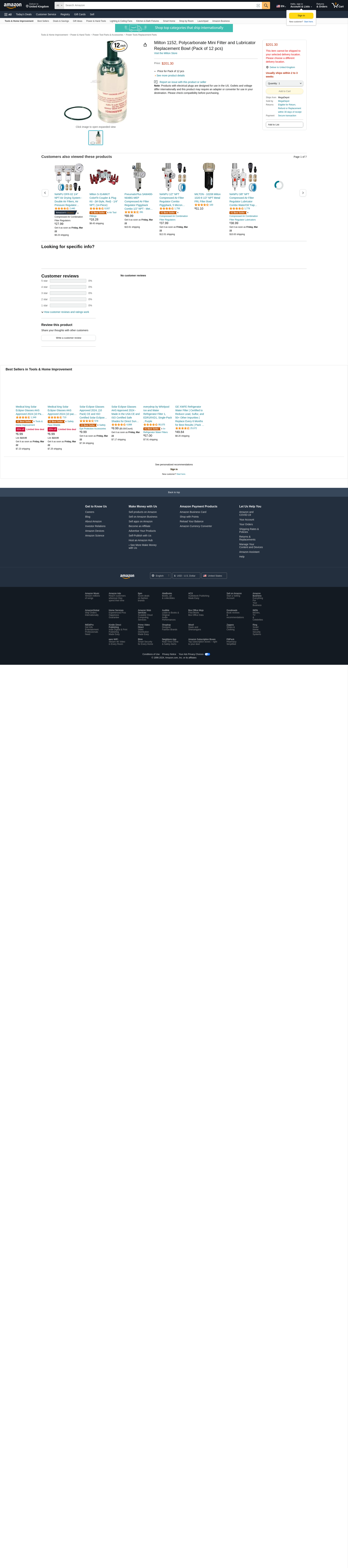 Milton 1152, Polycarbonate Mini Filter and Lubricator Replacement Bowl (Pack of 12 pcs)