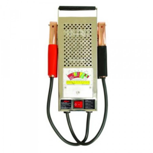 This battery, starter and charging system tester can test up to 120 amps at 10 volts. This tester has a chrome finish and includes storage on the side for cables as well as a 12 second cut off switch. With its heavy duty battery clips and 4 gage wire, this battery tester is perfect for cars and trucks. Tests 6 and 12 volt batteries Analog display is easy to read 1,000 cold cranking amps