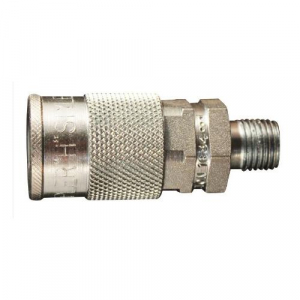 1834 1/4" MNPT H style couplers are used in larger tool applications requiring more SCFMs. With their basic flow size of 3/8", H style couplers offer up to 300 PSI. H style couplers are made of steel and are plated to resist rust. Complete with Buna-N Seals. 1/4" male national pipe thread Maximum of 300 pounds per square inch 67 standard cubic feet per minute Maximum temperature of 250 degrees Fahrenheit