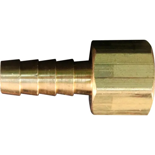 3/8" FNPT 3/8" ID Hose End Fitting. Features: 3/8" female national pipe threads 3/8" hose inside diameter Solid, non-swivel 3/8" FNPT solid brass hose ends are used to assemble new hoses or replace old fittings on hoses. A hose clamp may also be used but is not as desirable. For best results and professional finished product the hose end should be secured with a crimped ferrule. Fits hoses with 3/8" hose ID.