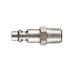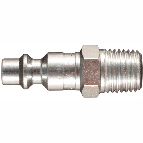 1/4" MNPT M Style Plug. Features: 1/4" male national pipe thread Maximum inlet pressure of 300 pounds per square inch Maximum air flow of 40 standard cubic feet per minute Maximum temperature of 250 degrees Fahrenheit Complies with military specifications MIL-C-4109 1/4" M style MNPT plugs are the industry standard style plugs. These steel plugs have a 1/4" basic flow size, maximum air flow of 40 SCFM and a maximum inlet pressure of 300 PSI.