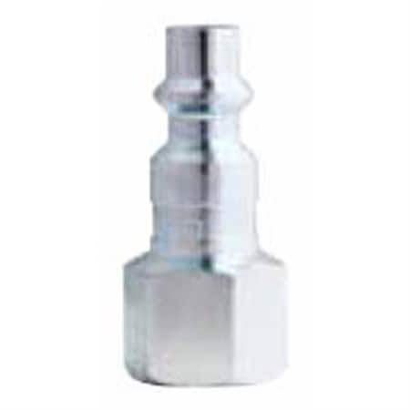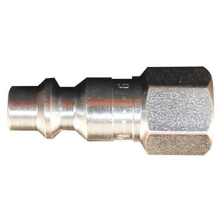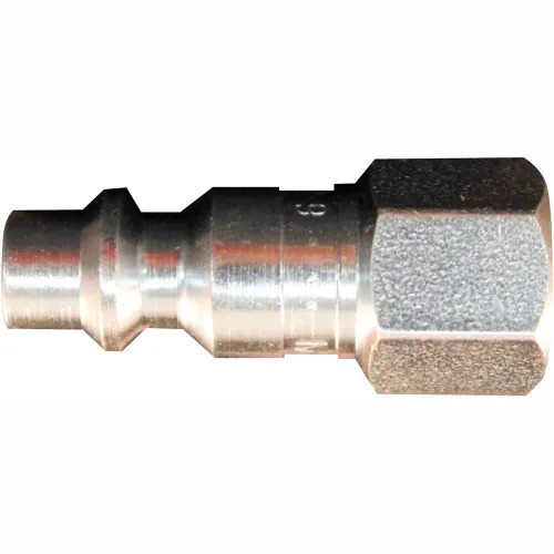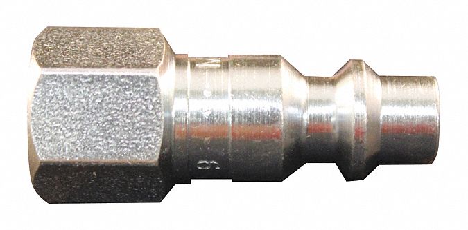 1/8" FNPT M Style Plug. Features: 1/8" female national pipe thread Maximum inlet pressure of 300 pounds per square inch 40 standard cubic feet per minute Maximum temperature of 250 degrees Fahrenheit Complies with military specifications MIL-C-4109 1/8" FNPT M style plugs have a 1/4" basic flow size and a maximum pressure of 300 PSI. The industry standard M style couplers come with a Buna-N seal and air flow of 40 SCFM. M style plugs are made of case hardened steel and are plated to resist rust.