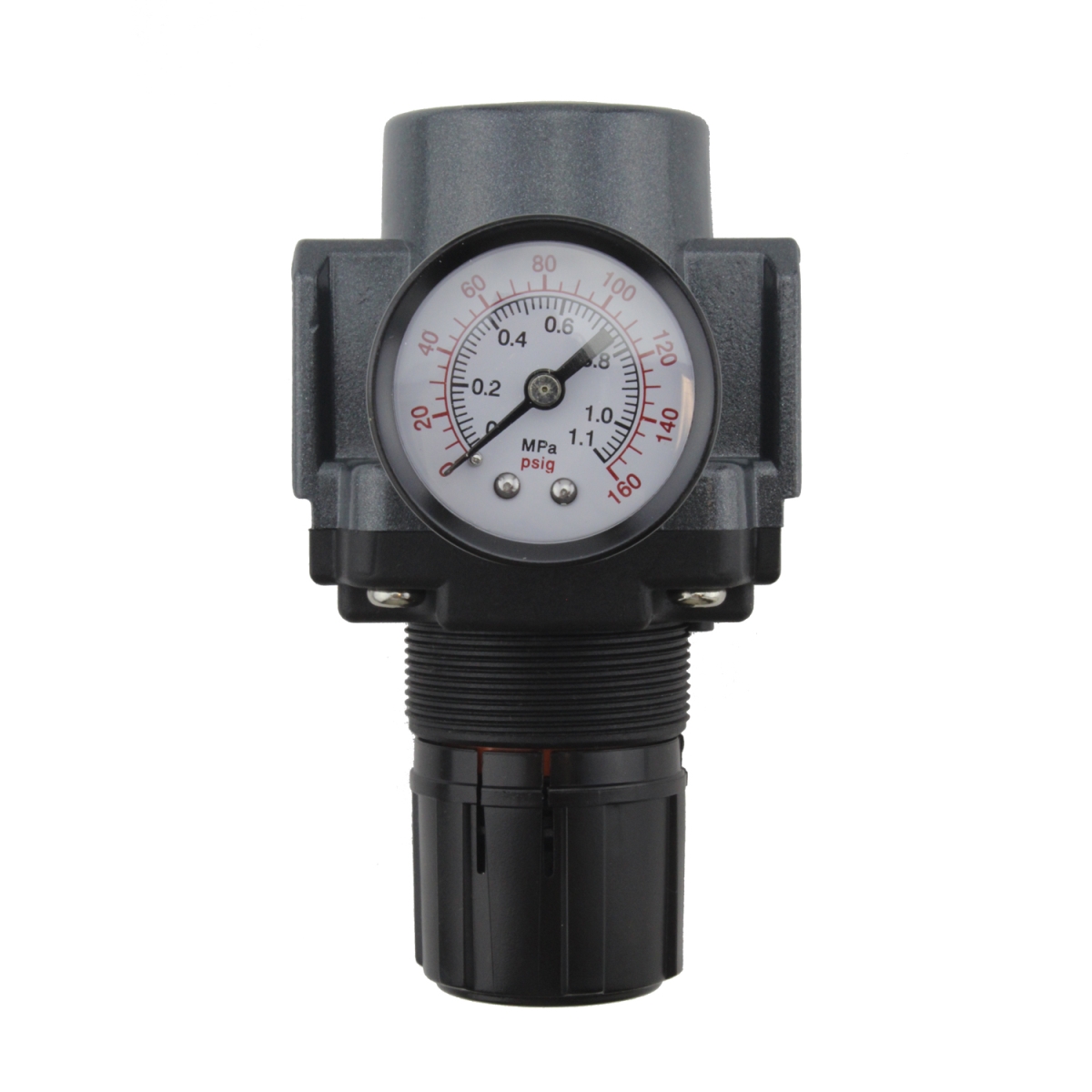 - 1/4" inch national pipe threads on both inlet/outlet. Gauge thread (gauge included): 1/4" center mount.