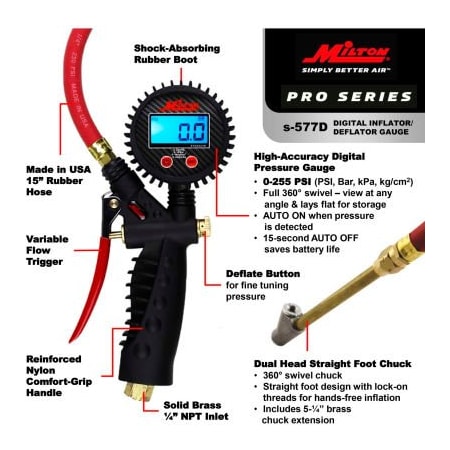 Milton Digital Inflator Gauge & M Style Coupler & Plug Combo