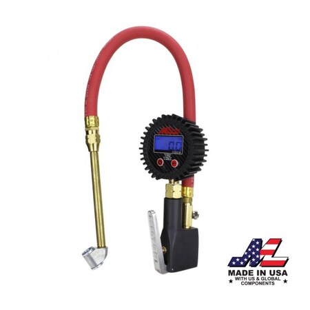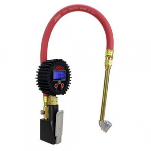 - QUICK, EASY READ OUT: Built-in, bright backlight and large 2. 5 inch dial for easy reading in low lit areas and the reduced design of the pneumatic inflator is perfectly equipped with a 360-degree swivel digital pressure gauge to move with you for optimal viewing in any circumstance. Auto-On when pressure sensed, Auto Off after 15 seconds, UV-printed face sticker. High Display Resolution: 0. 1 PSI. Rubber Boot to protect your rims.