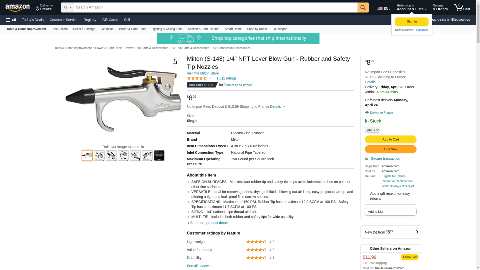 Milton (S-148) 1/4" NPT Lever Blow Gun - Rubber and Safety Tip Nozzles