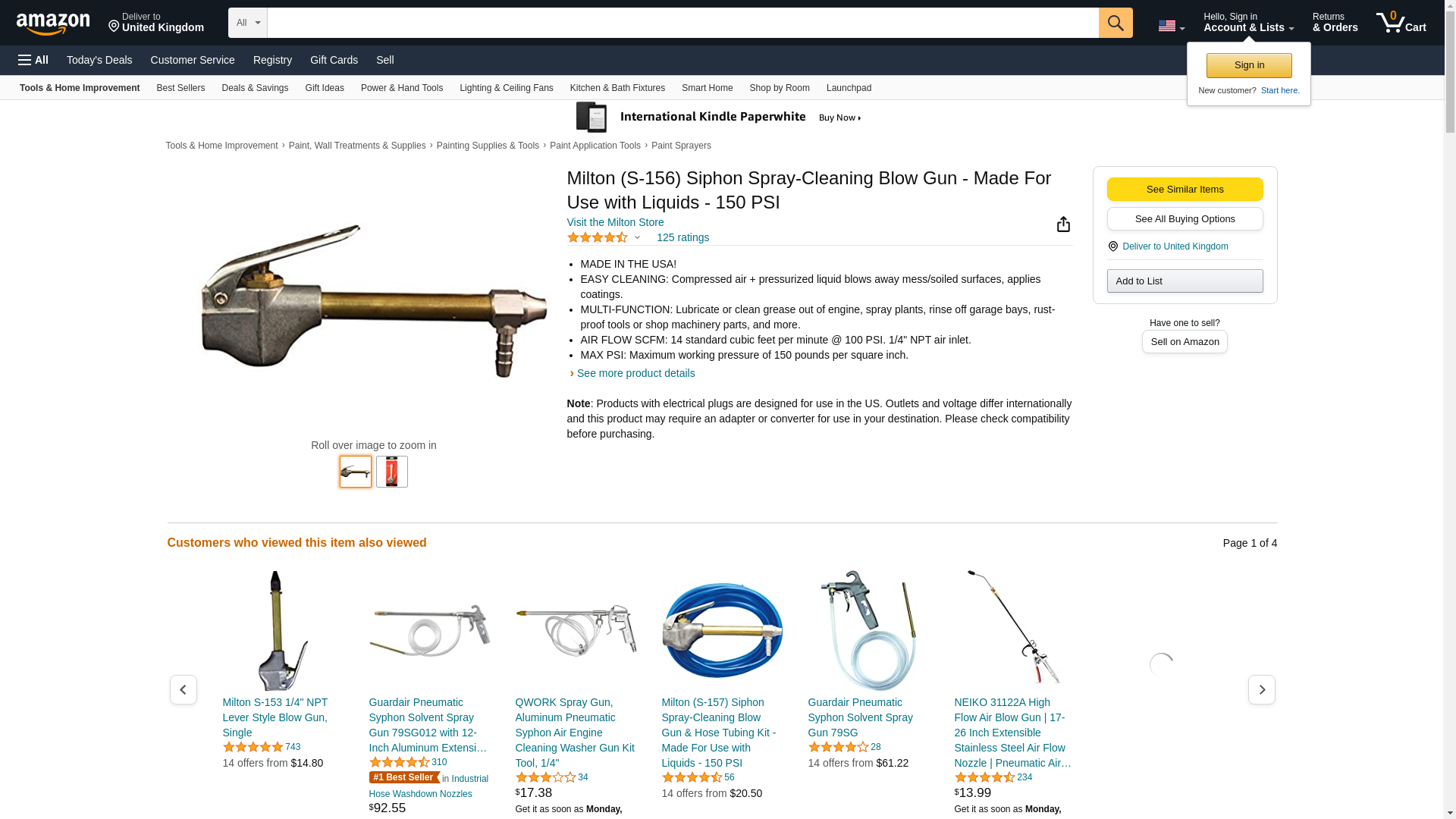 Milton (S-156) Siphon Spray-Cleaning Blow Gun - Made For Use with Liquids - 150 PSI