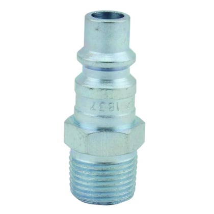 2 Pack, 3/8" NPT, Male, H Style, Plug, 3/8" Flow Size, Maximum Of 300 LB Per SQIN, Maximum Air Flow Of 67 Standard CUFT Per Minute, Maximum Temperature Of 250 Degrees Fahrenheit, Steel Plated To Resist Rust, Compatible With 3/8" x 3/8" I/M Style.