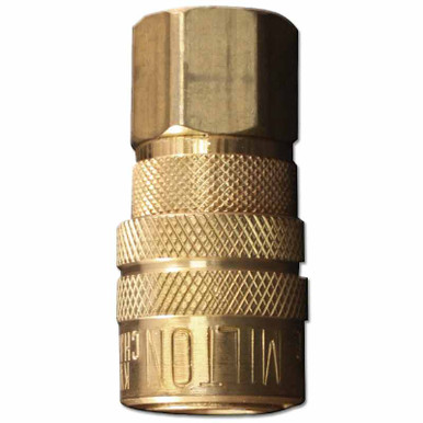1/4" NPT, Female, M Style, Coupler, Brass, 1/4" Basic Flow Size, Offers Maximum Of 300 PSI, Air Flow Of 40 Standard CUFT Per Minute, Maximum Temperature Of 250 Degrees Fahrenheit, Comes With Buna-N Seal, Kwik Change Couplers Will Interchange With All Manufacturers.