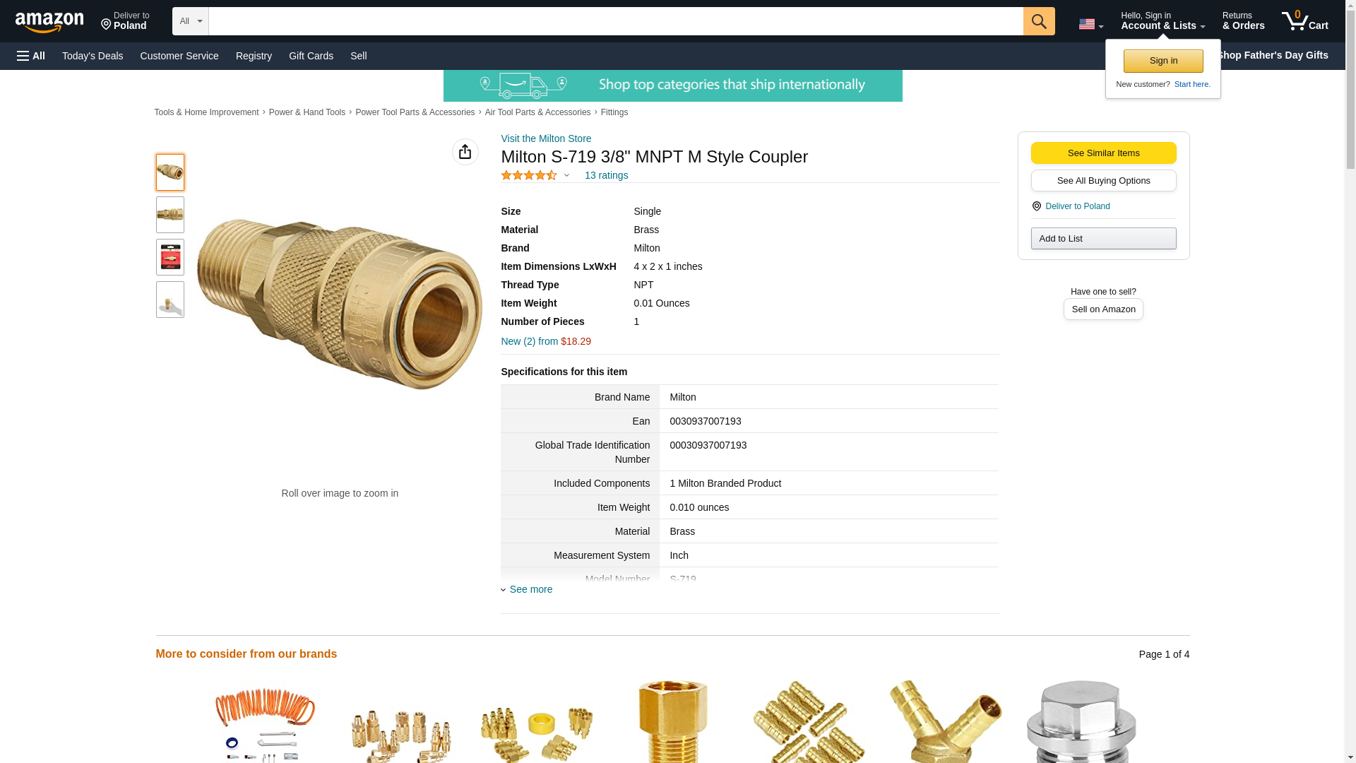 Milton S-719 3/8" MNPT M Style Coupler
