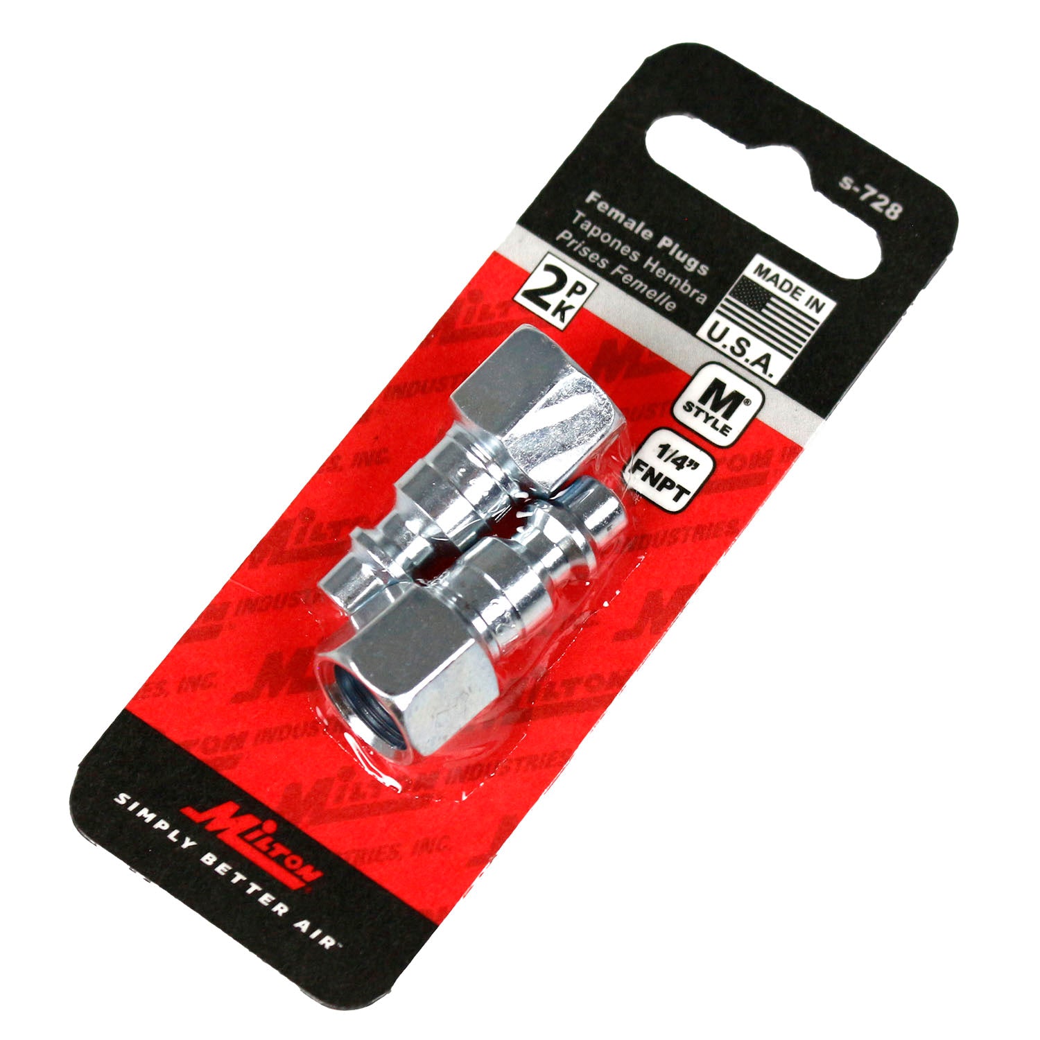 Milton Industries S-728 1/4" FNPT M Style Plug - 2 Count (Pack of 1)