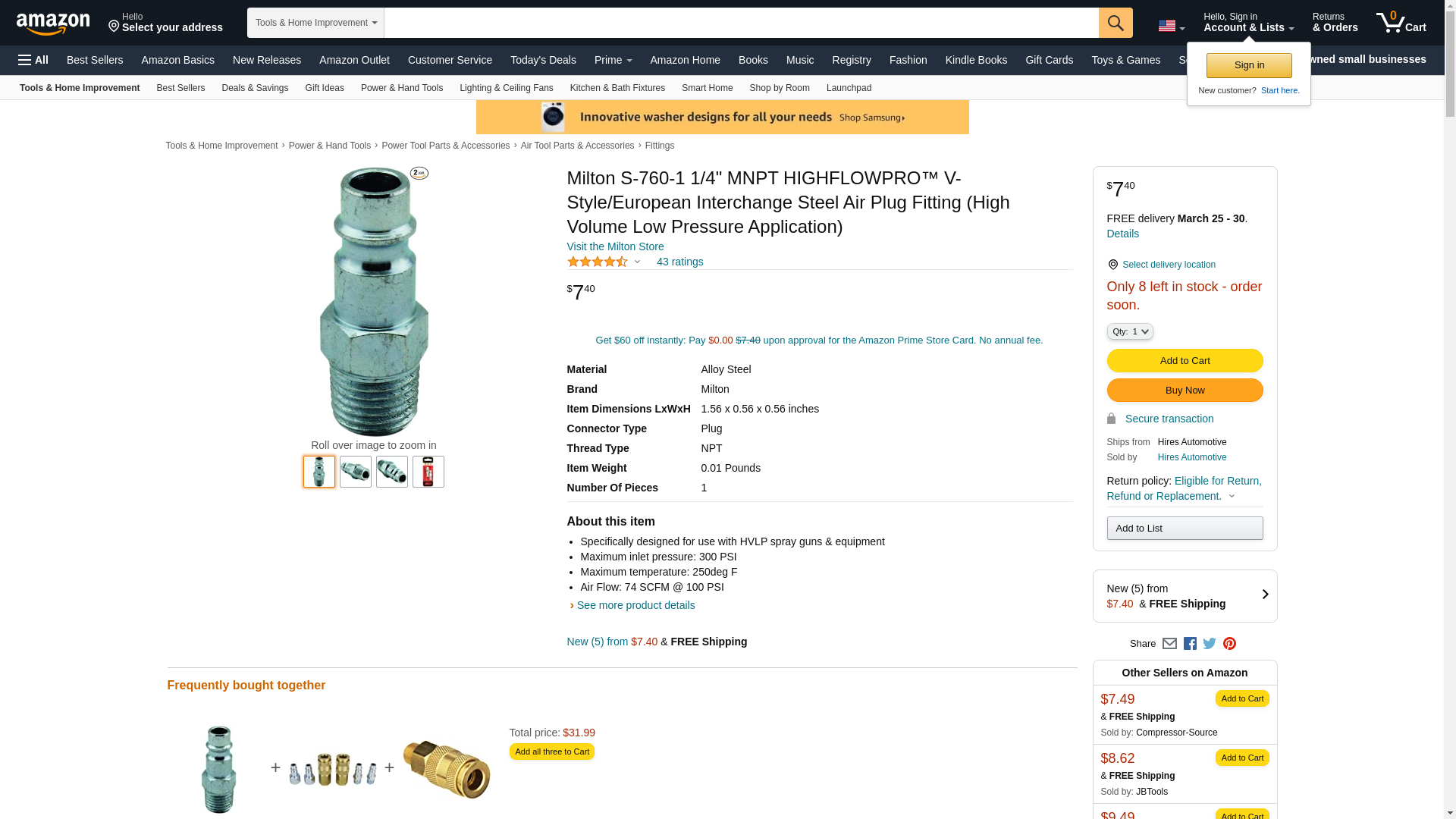 ![]() usmegastore.com | S-760-1 | 1 | -2 | 1 | 1 @ $3.43 |